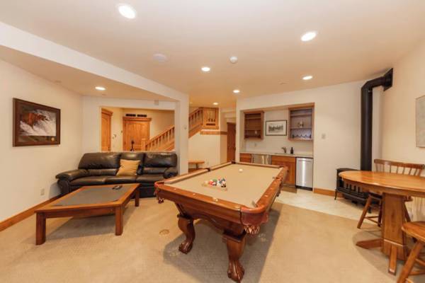 Inside, the lodge’s elegant design flows from the cozy living spaces to a gourmet kitchen, perfect for gathering over meals. A sauna and pool table in the recreation room add relaxation and entertainment options, making this an ideal destination for families and friends seeking both adventure and comfort.