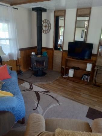 Located at a cool 8700 ft. Furnished 2/1 Mfg Home, King bed in master, futon, twin in 2nd bedroom, 3 TV's, CD player, internet, large kitchen, room to park RV, porch, grill and forced air furnace. Pets considered. Comfortable and clean. One time $60.00 cleaning fee. $100 sec deposit plus $40/pet refundable sec dep. Quiet, safe neighborhood 15 minutes from Rocky Mountain National Park entrance and town of Grand Lake. 2 night min. 4 people max. Smoking on outside porch only. (CLOSED FOR WINTER SEASON. OPEN JUNE 15 2026)