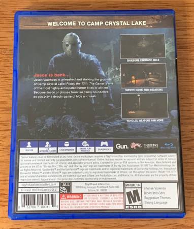 *If interested include a Phone Number or do not expect a response. Yes, it is available. Look at the map prior to emailing. Friday the 13th: The Game for the Sony PlayStation 4. The disc is in great...