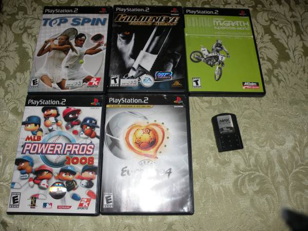 PlayStation 2 , all hook ups, 1 memory card, 1 controller with following games : Crash Bandicoot Warped, Crash Bandicoot 2 cortex strikes back, Crash Bandicoot, Sled Storm collector's edition, Star Wars dark forces, Tiger Woods PGA Tour Golf, Tetris Plus The Italian job (never out of package), Euro 2004 Portugal, Goldeneye Rogue Agent, Top spin, Gran Turismo 3 A-spec, ATV off road fury 2, Socom U.S. Navy Seals combined assault, All with books, Jeremy McGrath supercross world, MLB Power Pros 2008 both without books. Please call on landline.