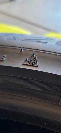 True winter tires with the 3-Peak Mountain Snowflake symbol (severe snow rated)