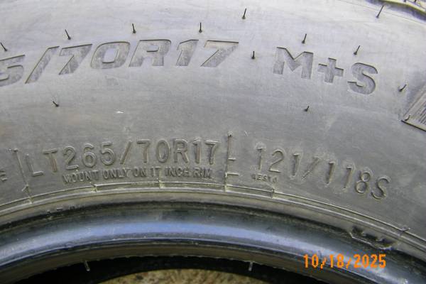 4 good tires made in 2023 LT265-70R17 deantires back country at2 121/118s load range e price is firm call