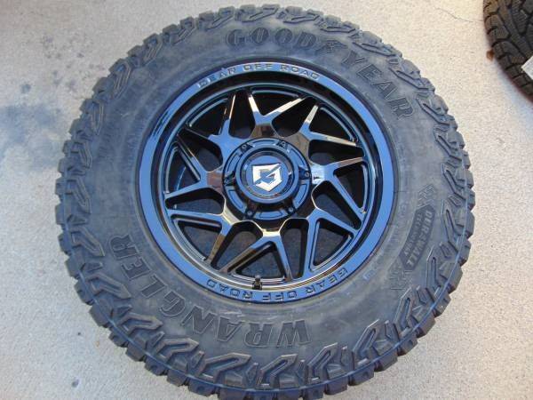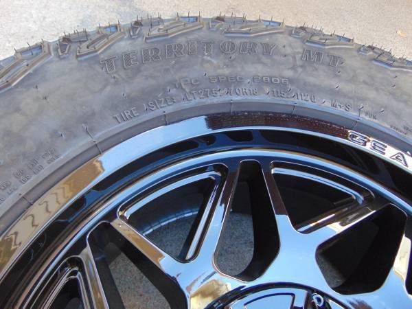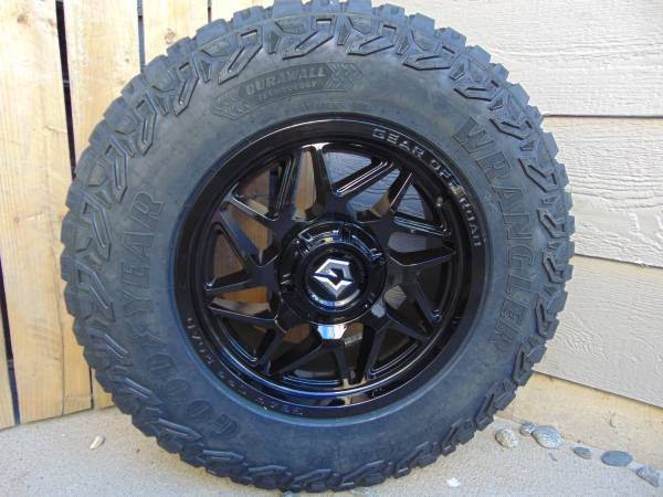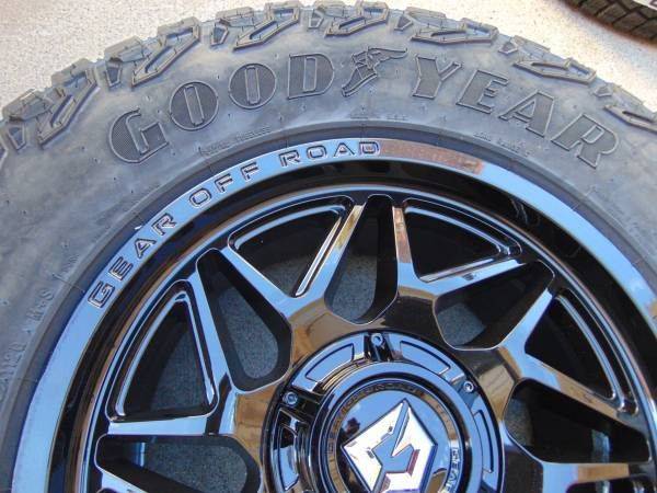 Price is $1,700 firm no offers no trades please. These wheel are mounted and balanced on a Brand New set of LT 275 70 18 Goodyear Territory M/T 6ply tires & ready to be installed. They are dual drilled 5X5 & 5X5.5 with a +10MM offset, all the wheel specs are posted in the last picture. Call Karl at show contact info
