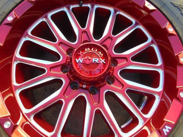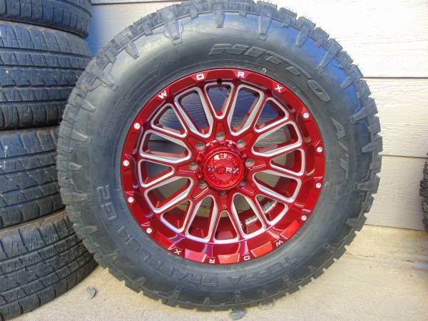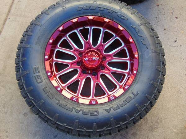 Price is firm at $2,800 no offers no trades please. These wheel are mounted and balanced on a Brand New set of LT 325 60 20 Nitto Terra Grappler All Terain G2 10ply tires & ready to be installed. Bolt pattern is 8X170 which will ONLY work on Ford F250/F350 & Ford Excursions all the wheel specs are posted in the last picture. Call Karl at show contact info