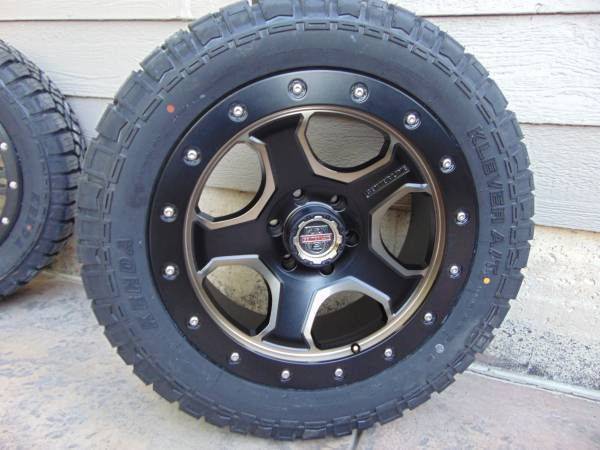 Price is $1,600 firm no offers no trades please. These rims are mounted and balanced on a set of 285 50 20 Kenda Klever All Terrain Tires ready to be installed. I have these wheel available in 6X5.5 for Chevy and GMC, as well a most 6 Lug Toyota and Nissan Trucks. Call Karl at show contact info