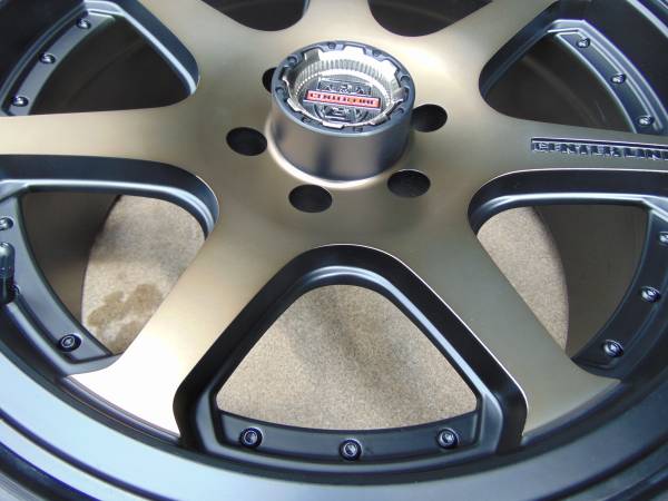 if you want to buy these Brand New 20X9 Satin Bronze and Satin Black Centerline Rims & 275 55 20 Laufenn All Terrain Tires.
