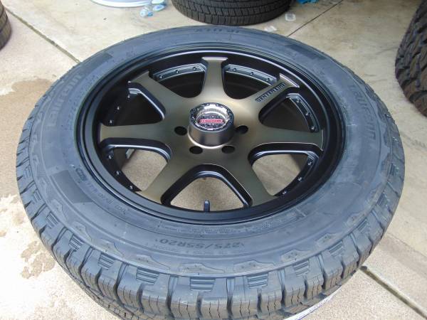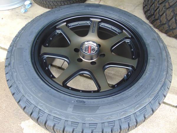 **$1,800 firm no offers no trades please** These rims are mounted and balanced on a new set of 275 55 20 Laufenn All Terrain Tires ready to be installed. I have these wheel available in 6X5.5 with a 0MM Offset for Chevy and GMC, as well a most 6 Lug Toyota and Nissan Trucks. Call Karl at show contact info