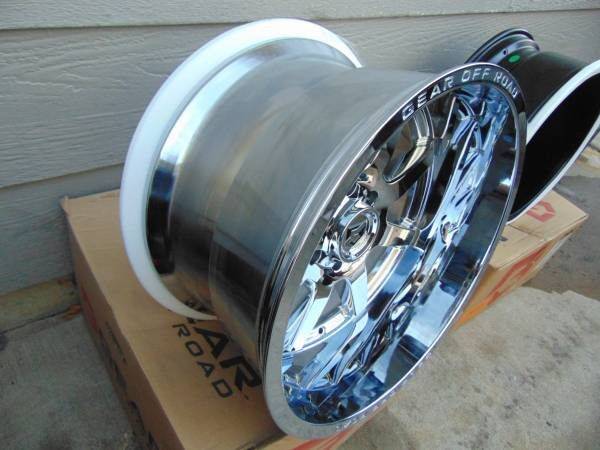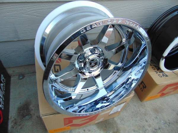 for fastest response if you want to buy these 4 Brand New 20X12 Chrome Gear Offroad Rims. All wheel specs are posted in the last picture.