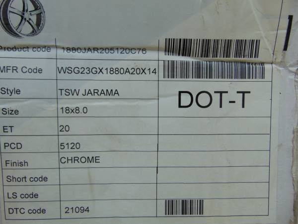 Price is $1,000 firm no offers no trades please. These Exact same rims sell online for around $2,00. These are a High End Rims made by TSW the model is *JARAMA* they have a Chrome Finish. They are 18X8 with a +20MM offset and have a 5X120 bolt pattern. I also have several tire options available depending on size and brand. If you would like to purchase these wheels, call Karl at show contact info