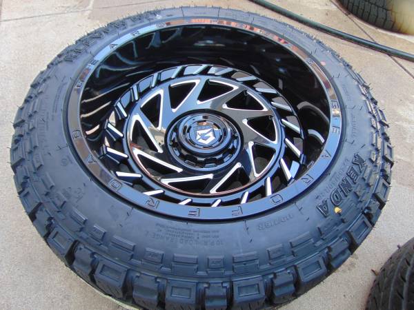 for fastest response if you are a serious buyer. These wheels are double drilled 6X139.7(6X5.5) and 6X135 they are 20X12 with a -44MM offset and are Gloss Black with Milled Accents. All wheel specs are posted in the last picture. These rims are brand new and are mounted on a Brand New set of LT 285 50 20 Kenda Klever R/T 10ply Tires.