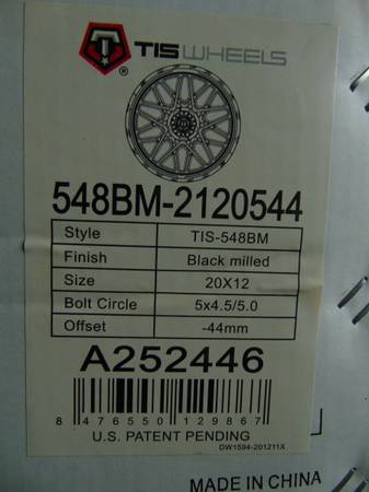 for fastest response if you want to buy these 5 Brand New 20X12 Black & Machined TIS Rims. All the wheel specs are posted in the last picture.