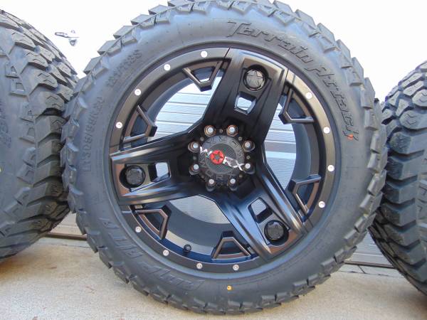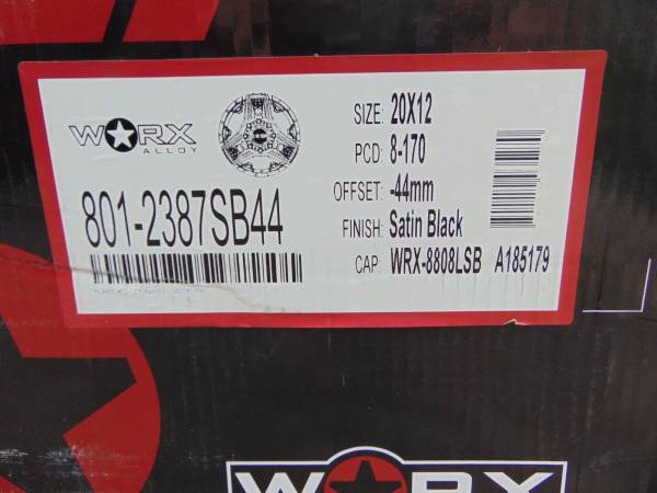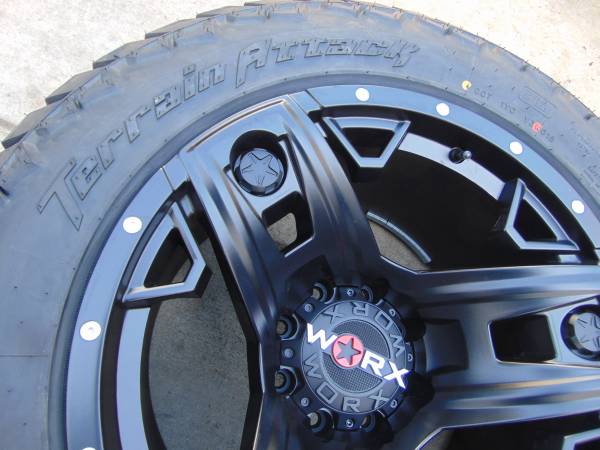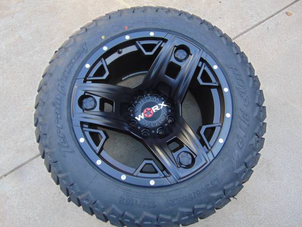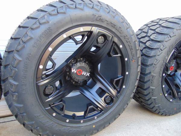 Price is $1,900 cash firm no offers no trades please. **I have pictures of a set of these same rims that are mounted on an Excursion just to show how a 20X12 with a -44MM offset looks like** These rims are Brand New and are mounted on a Brand New Set of LT 305 55 20 Amp X/T Tires, these wheels are made by Worx the model is *TRIAD* They are Satin Black and are 20X12 with a -44MM offset they are available in 8X170 which will fit on 1999 and newer 8 lug Ford F250/F350 Trucks and Excursions Price is for 4 brand new wheels and 4 Brand New Tires **MOUNTED AND BALANCED** If you would like to purchase these wheels call Karl at show contact info