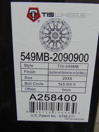 for FASTEST response if you want to buy these Black & Machined 20X9 TIS Rims. I also have several tire options for these wheels price of tires depends on size and brand. These rims are brand new in the box all the specs are pictured on the label of the box.