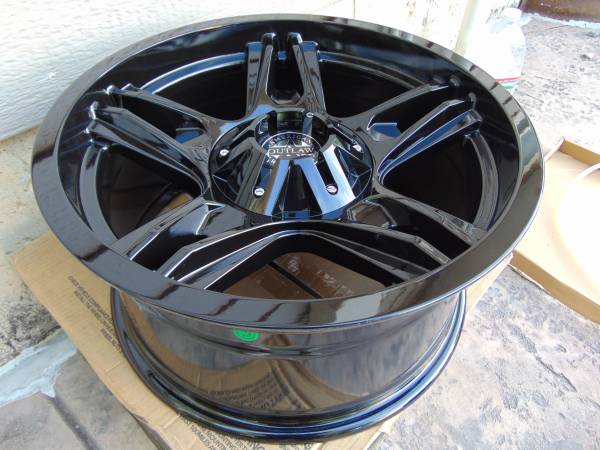 for fastest response if you want to buy these 5 Brand New Gloss Black 17X8.5 American Outlaw Lonestar Rims. I have several tire options available for these rims price depends on size and brand. All the wheel specs are posted in the last picture.