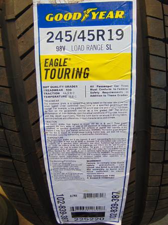 **Only 3 tires available at this time** Price is $325 cash firm no offers no trades please. If you want to buy these 3 New 245 45 19 Goodyear Eagle Touring Tires, call Karl at show contact info