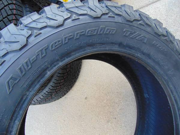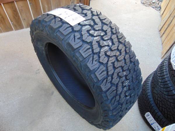 Price is $1,625 cash firm no offers no trades please. These same tires would cost around $2,125 for the set of 5 new at your local tire shop. These tires are Brand New with the stickers and have never been mounted date of manufacture is the 31st week of 2024 and is shown in the picture. These tires are 8ply each tire has a max load of 2,835LBS. at 65PSI. If you want to buy these 5 Brand New LT 285 55 20 BFGoodrich All Terrain T/A KO2 Tires, call Karl at show contact info