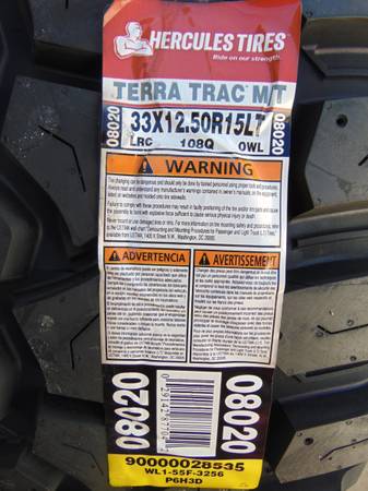 4 New LT 33 12.50 15 Hercules Terra Trac MT Tires *WHITE LETTERS*2023* - $850 (Aurora)