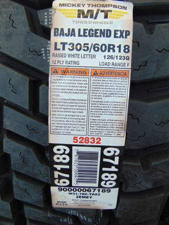 **Price is $1,100 cash firm no offers no trades please** If you want to buy these 4 Brand New LT 305 60 18 Mickey Thompson Baja Legend EXP Tires, call Karl at show contact info