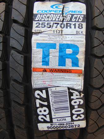 2 New Old Stock 255 70 18 Cooper Discoverer CTS Tires 4PLY *Date 2014* - $175 (Aurora)