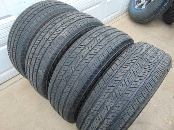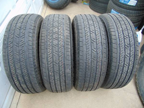 *PLEASE TAKE A GOOD LOOK AT ALL OF THE PICTURES TO SEE THE EXACT CONDITION OF THESE 4 TIRES* *PRICE IS FIRM AT $450 CASH NO OFFERS NO TRADES PLEASE* THESE SAME WOULD SELL FOR AROUND $1,450 FOR THE SET AT YOUR LOCAL TIRE SHOP. These tires have approximately 9/32nds to 10/32nds of tread remaining from the 11/32nds they have when new *each tire can been with a tread depth gauge* If you want to buy these 4 Used 265 60 20 Bridgestone Dueler HT685 *4PLY* Tires, call Karl at show contact info