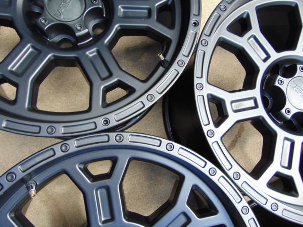 4 Used Matte Black 18X9.5 Vision V-Tec Raptor Rims *5X5* *JEEP* *-12MM - $550 (Aurora)