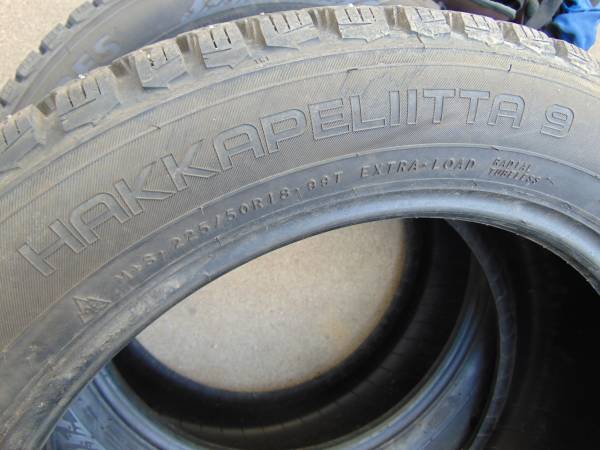 3 Used 225 50 18 Nokian Hakkapeliitta9 *STUDDED* Tires 99T XL *2017* - $250 (Aurora)