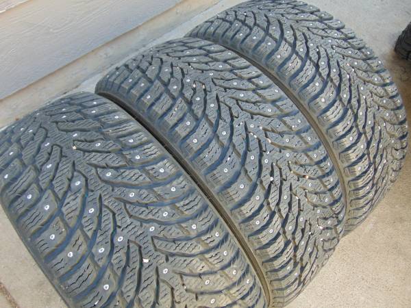 *Only 3 tires available at this time* Price is $250 firm no offers no trades please. All 3 tires have approximately 10/32nds to 11/32nds of tread. If you would like to buy these 3 Used 225 50 18 Nokian Hakkapeliitta9 STUDDED Tires, call Karl at show contact info