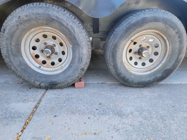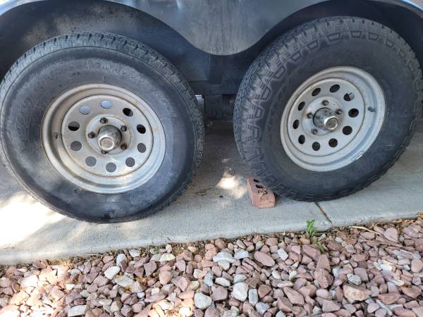 (5) 5 x 5 bolt pattern Chevy/ GMC with (3) 235 75 15 tires and (2) 225 75 15. 1 Goodyear Wrangler and 1 BFGoodrich.