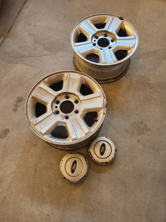 For sale are these F150 wheels, they are alloy wheels, size 17", they come with hub caps, buy one, or both, please call or txt no emails too many scammers, se habla español. If you can see the ad the item will still be available I will remove when gone. The price is $50 per wheel.
