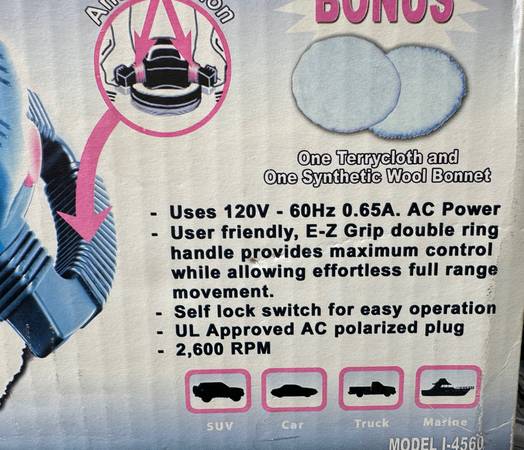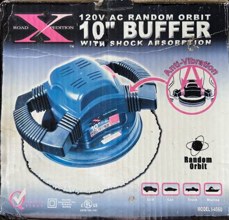 Elevate your polishing experience with the ROAD XPEDITION POLISHER I-4560. Designed for both professionals and DIY enthusiasts, this polisher boasts a 10-inch disc diameter, which is perfect for tackling a wide range of polishing tasks. Its rotary/circular action ensures even buffing, bringing out a brilliant shine on your surfaces. The polisher is engineered to run on a standard 120V outlet, providing consistent power for efficient operation. With its robust build and reliable performance, the ROAD XPEDITION POLISHER I-4560 is a valuable addition to any garage or workshop, ensuring your projects look their best. Excellent condition. $25