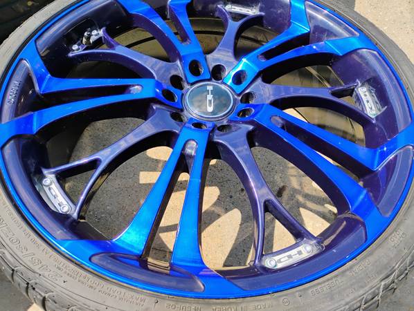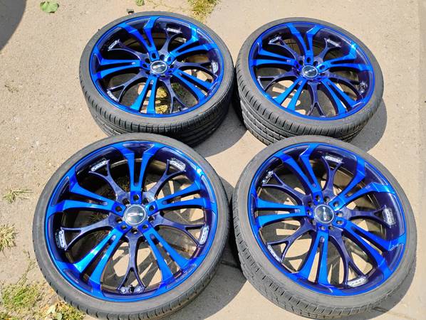 Up for sale is this set of 20" inch HD Spin Out Aluminum Alloy Multi-Spoke Purple/Blue Accent Wheels with Z-Rated Tires for $950.oo OBO.