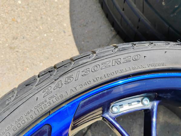 Nexen tires that measure 245/30ZR20 with lots of tread on them. This wheel / tire set is extremely cool looking!!!