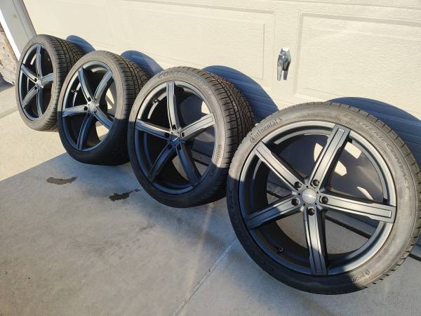 Selling these Special Edition, Vision Boost Matte Black ALUMINUM Wheels with tires for $1,500.00 OBO. These wheels are Aftermarket mounted with 275/35ZR20 Continental Extreme Contact Sports Plus tires with lots of thread left on them, and TPS sensors. This package cost over $3000.00 new!! Wheels $350 ea., Tires $330 ea, Mount and balance $100 ea, and Lug nuts $50 set. Locking lug nuts, key, and two hub spacers included in the deal!!!