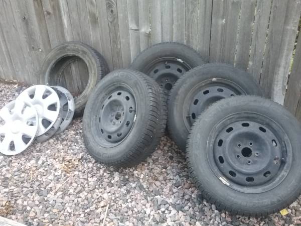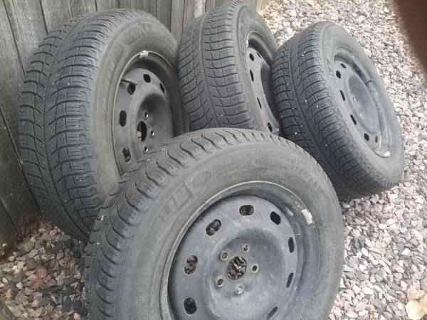 15 in .michelin ice x on Toyota rims around 50 to 40 % 4 mounted a a fifth tire for a spare 250.00 cash meet in North area . After 6pm during week and weekends