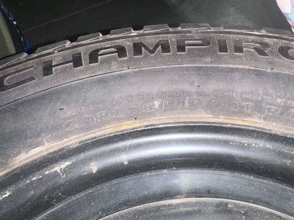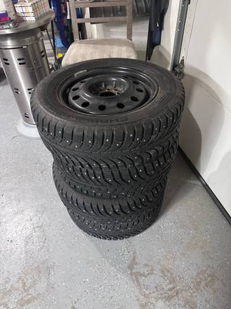 Few years old. But only used 1 year. Please contact me if interested. 205/65 R15 94T Radial Tubeless Studded Snow Tires Steel wheels • Wheel diameter: 15” • Wheel width: 6” • Wheel size: 15*6 •...