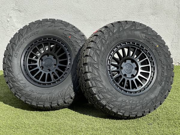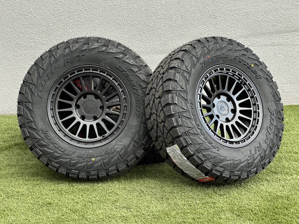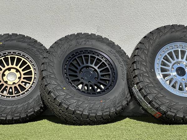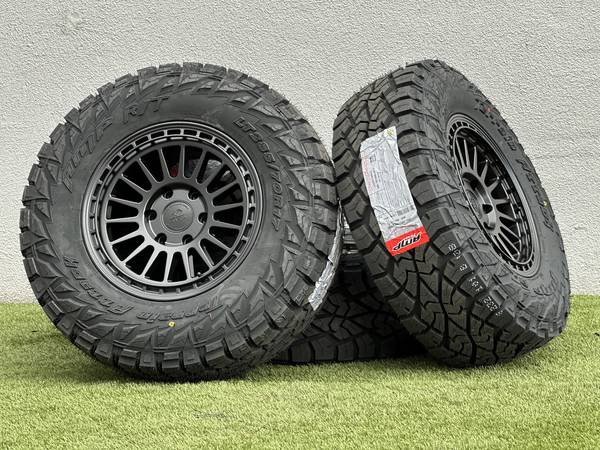 Brand new 17" Basta Rotary Forged RF3 wheels in Black (Bronze or Polished Silver color finishes also available), wrapped in AMP Terrain Attack R/T LT285/70R17 tires.