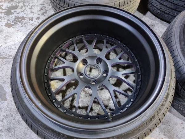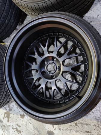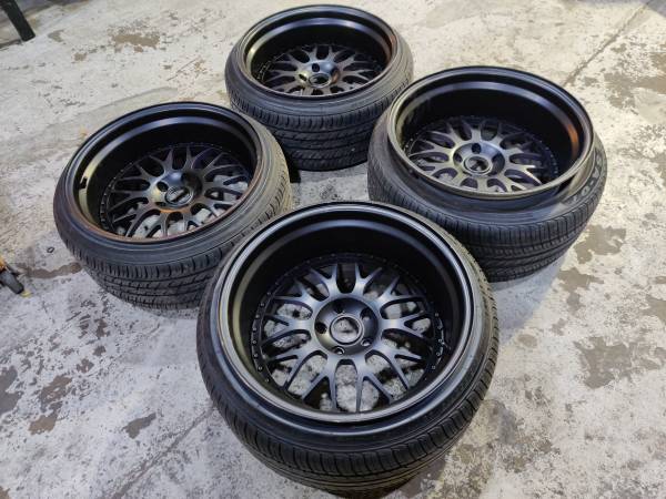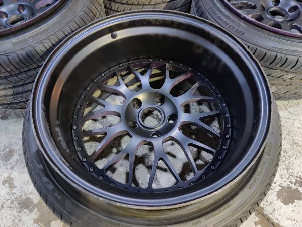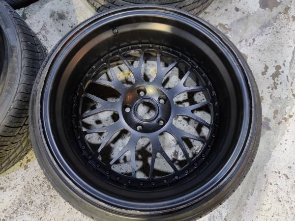 Wheels are 3 piece forged (step 40 holes), made in USA and pretty light. Normal wear conditions. Currently plastidip black. One rear inner barrel have a crack can probably be fix or get replacement barrel. Tires have good life left, one tire is gone. Asking $1000, serious buyer only please. Cash, gold or crypto. Text show contact info