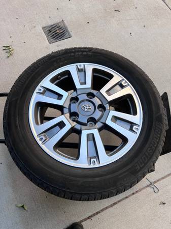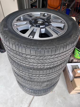 Tires have 15k miles on them. All season M&S rated and run quiet and smooth. Wheels came from 2020 Tundra, 5x150 hole pattern. Selling due to moving towards an off-road build.