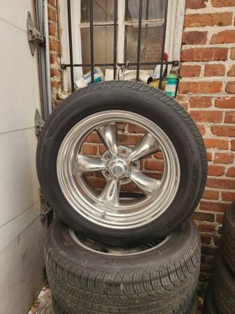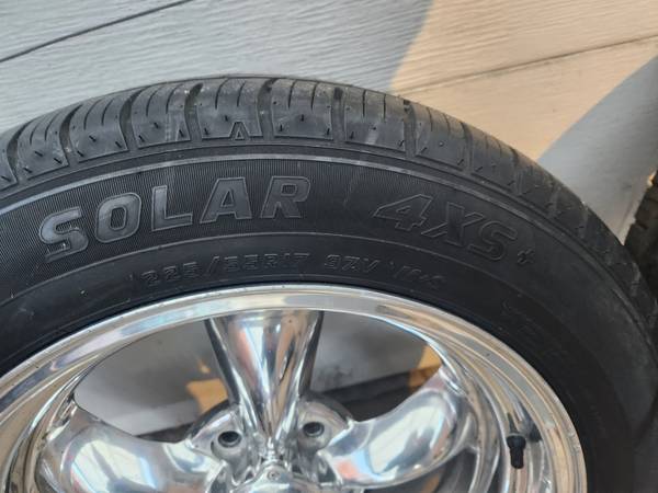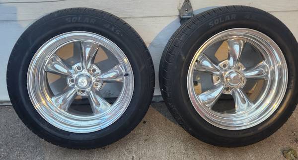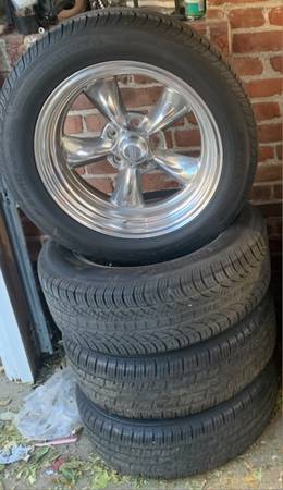 Four American Racing Torq Thurst II Wheels 17x8 and 17x9 on 17in Radials 2- P225-55-17" and 2-P-235-55-17" in good condition for Chevy's Camaro's Corvette's, Chevelles, Impala's Nova's S10 Trucks other GM Vehicles with bolt patterns 5x4.75 5Lug $850 Cash No Lowballers Serious Inquiries Only call show contact info