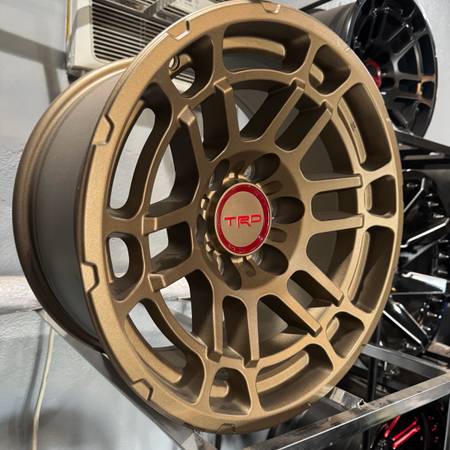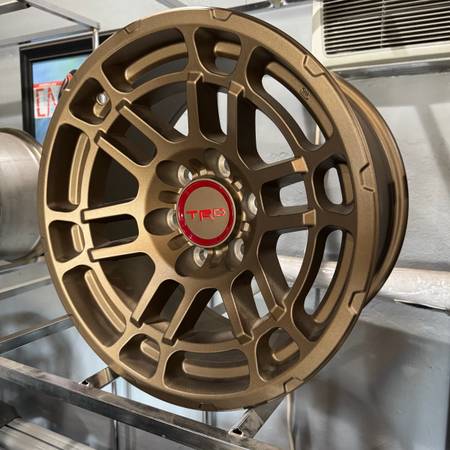 New set of bronze Toyota TRD replica wheels 17x9 aggressive offset so there’s no need for a spacer.