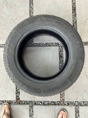 3 Viking Contact snow tires used for 2 seasons (approx 15-20k miles) on a Mercedes GLC300. Unfortunately not a full set as I had a sidewall puncture in one last winter. $150 for 3, or $50 each. See coin photos for tread depth. Selling as I no longer own the vehicle.