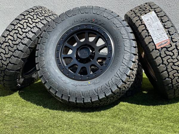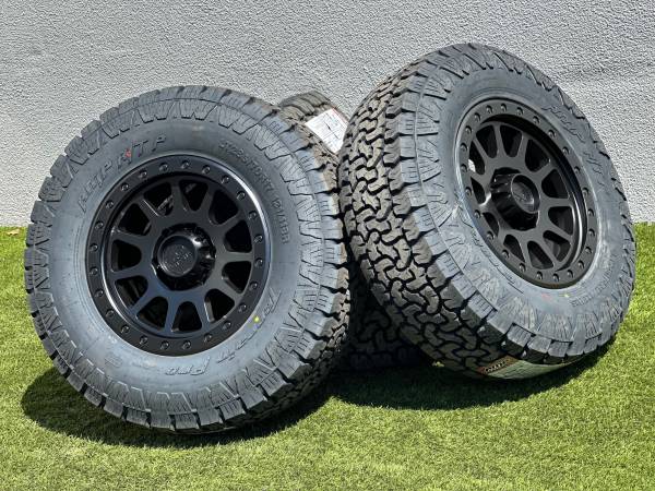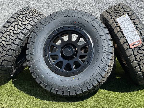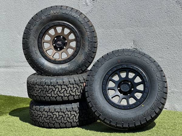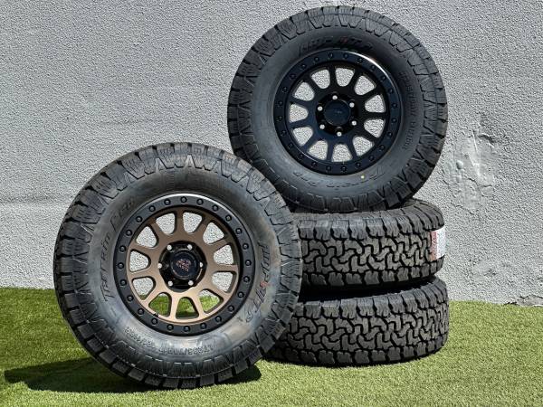 Brand New 17” Basta RF1 Rotary Forged wheels in Black finish (Bronze also available), wrapped in AMP Terrain Pro All-Terrain LT285/70R17 tires. These A/Ts are Load Range E, 10 ply, smooth on road with confident year-round traction, and carry a 60,000-mile manufacturer tread warranty.
