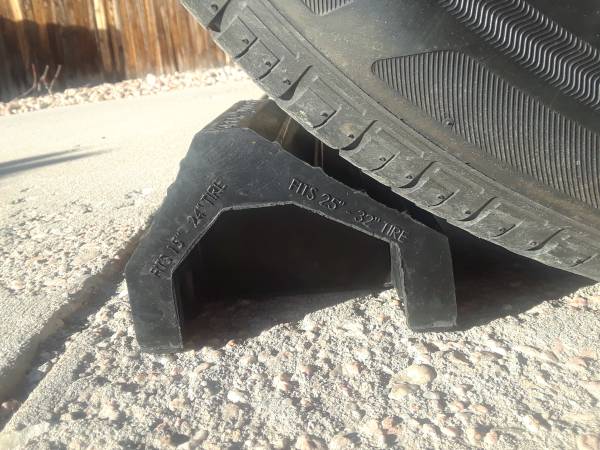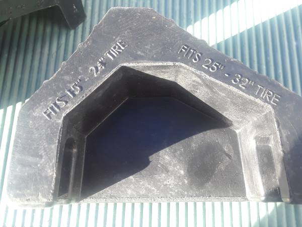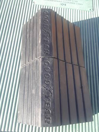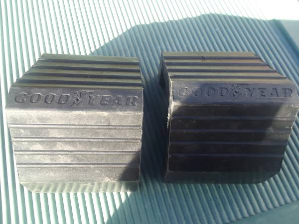 I have several bulk cases of new never used Goodyear wheel chocks. Made from hard rubber type material. Each one has two angles for different sized tires. $15 per pair or $25 for two pairs