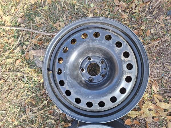 4 Mopar, Jeep, Dodge black steel wheels 17"×6.5" 5 lug, 5 on 108 pattern Renegade, Cherokee, and others. Great for winter, snow or off road tires $50.00 obo for all 4