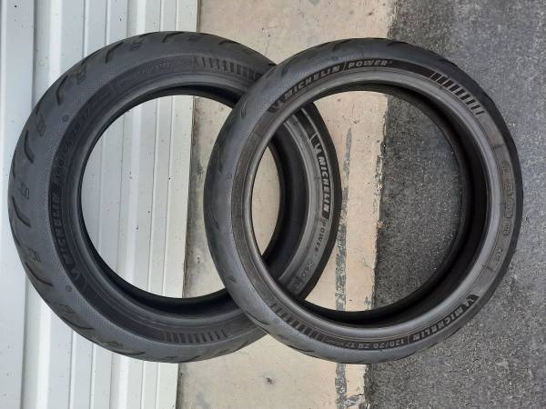 For sale TWO nice lightly used front and rear sportbike Superbike motorcycle tires
