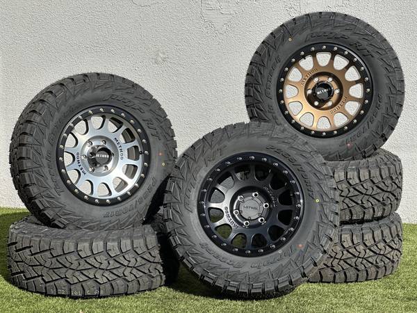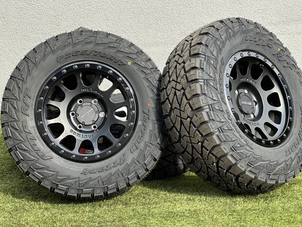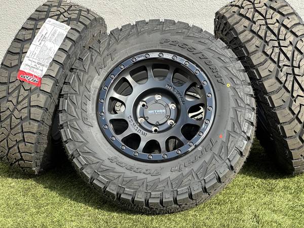 Brand new 17” Method MR305 wheels in Black with Gloss Black Lip finish (Bronze or Silver also available), wrapped in AMP Terrain Attack R/T 265/70R17 tires.