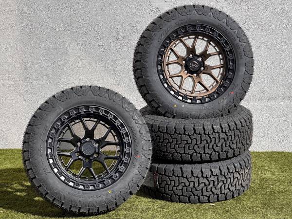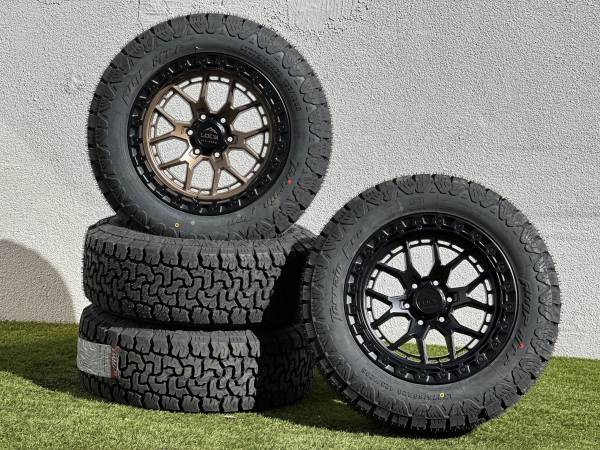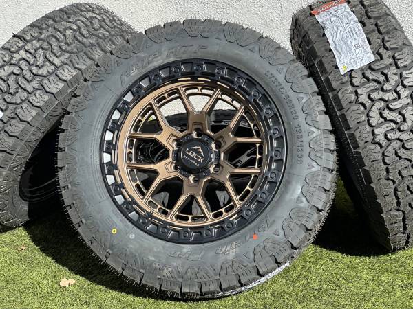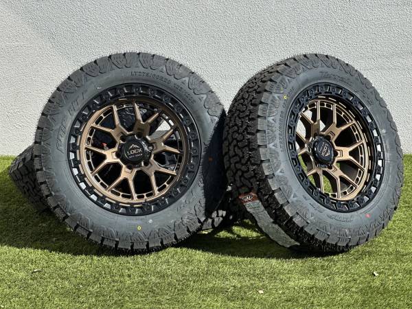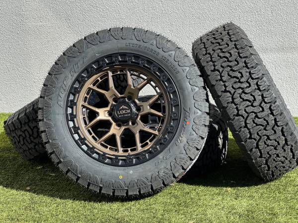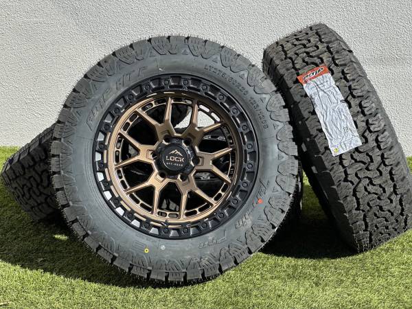 Brand new 20" Lock Off Road Commando wheels in Bronze (Black or Polished Silver color options are also available), wrapped in AMP Terrain Pro All Terrain 275/60R20 tires.