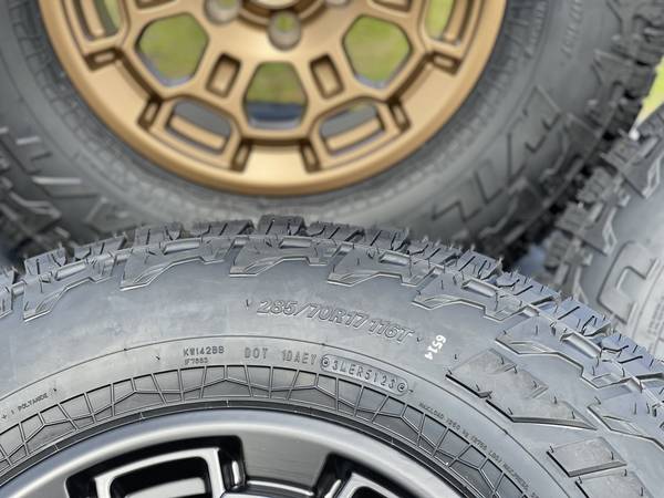 Mounted on Falken Wildpeak AT4W All Terrain tires – size 285/70R17 (33” overall diameter). Perfect fit for lifted trucks & SUVs!