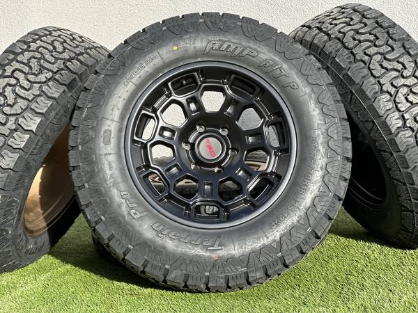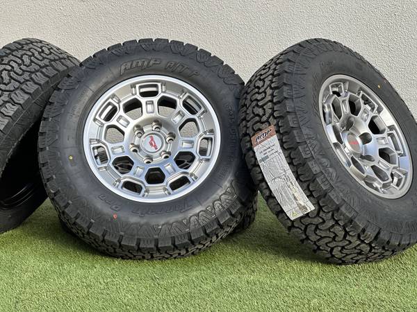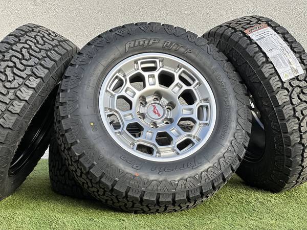 New Set of 4 Toyota Tundra 18” TRD Pro Style wheels (3 color options available) wrapped in new tires AMP Terrain Pro A/T LT275/70R18 tires All Terrain 10-ply Load Range E