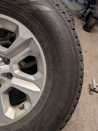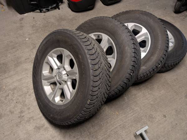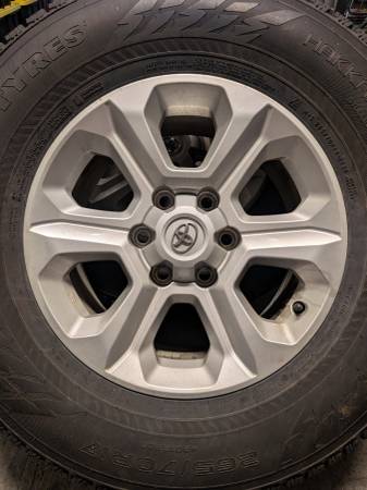Selling a set of four (4) Nokian Hakkapeliitta R3 SUV studless winter tires mounted on genuine Toyota 6-lug alloy wheels. This setup is balanced and ready for winter. Stored indoors in climate controlled garaged since new.
